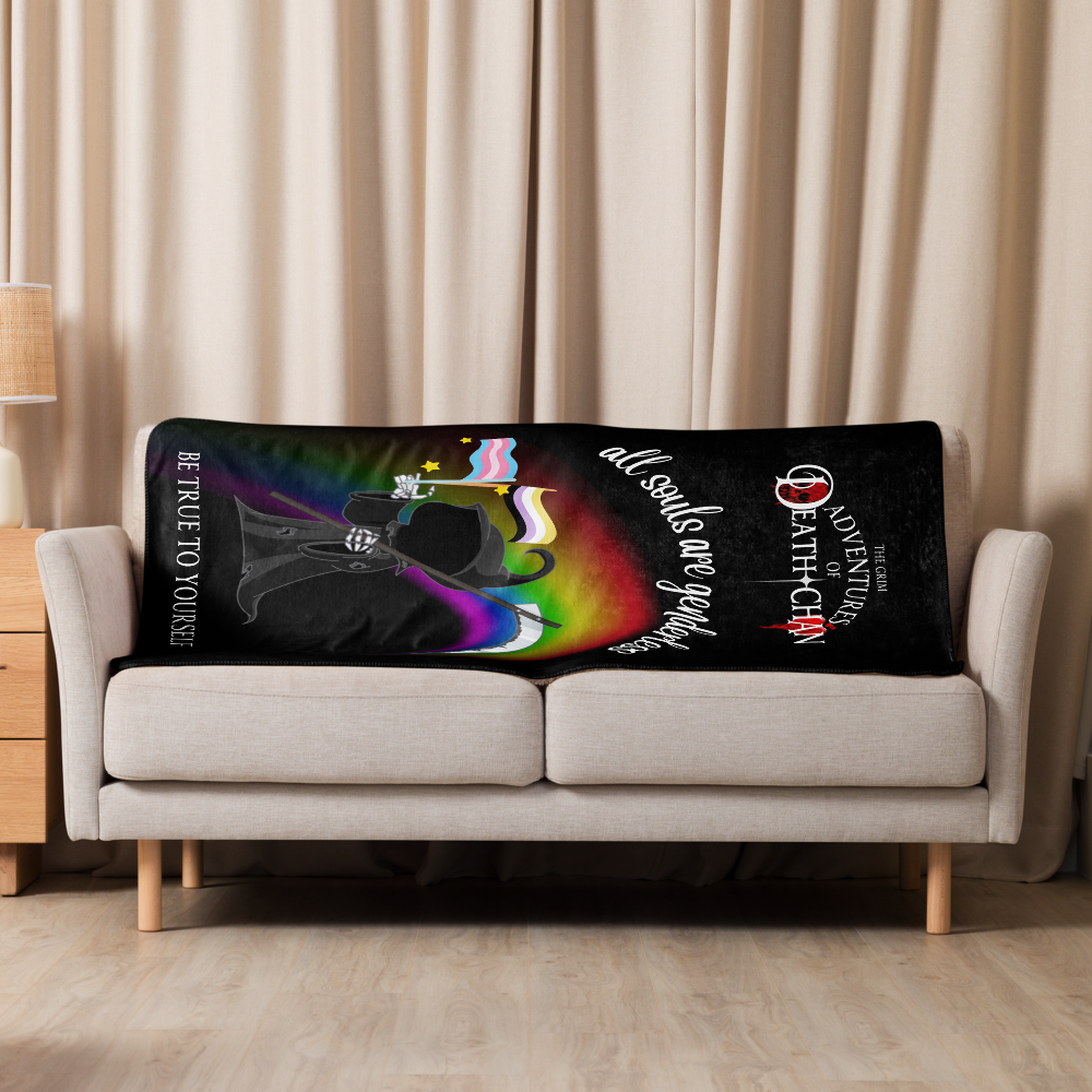 ALL SOULS ARE GENDERLESS - Sherpa blanket (The Grim Adventures of Death & Chan)